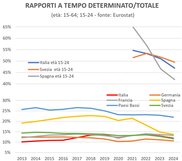 Se si getta innanzitutto uno sguardo ad alcuni dati statistici per avere un primo dato sugli effetti concreti del Jobs Act non si trova per contro molta evidenza di una accentuazione della precarietà del lavoro – ciò vale anche in una comparazione con altri paesi europei considerati in genere più attenti storicamente agli interessi del lavoro.